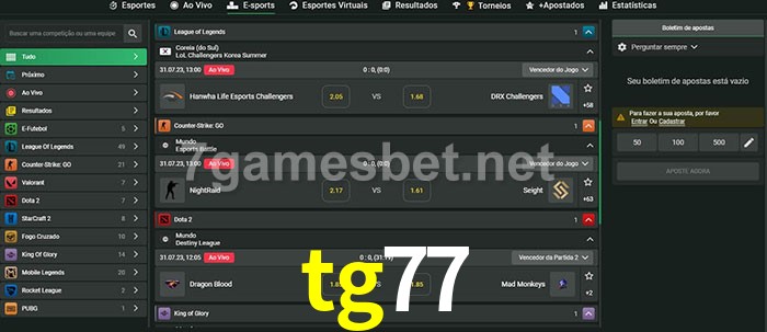O tg77 oferece uma grande seleção de opções de apostas em e-sports com probabilidades competitivas